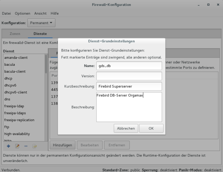 So die Konfiguration von Samba und Firebird sind abgeschlossen.